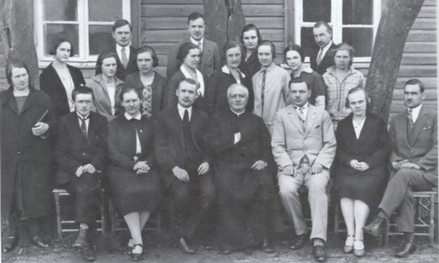 Latgolys Tautys universitate dubynuotuoji i pasnīdzieji 1929. godā Rēzeknē. Karteņa:: P. Zeile “Latgales kultūras vēsture”, 2006. gods.
