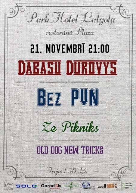 21. novembrī klauseituojus Daugavpilī prīcēs latgalīšu grupys – „Bez PVN”, svietūt 10. godadīnu, kai ari jūs draugi „Dabasu Durovys”, „Ze Pikniks” i „Old dog new tricks”. Koncerts nūtiks „Park Hotel Latgola” restoranā „Plaza” 21:00. Īeja – 1,50 Ls.