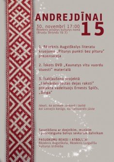30. novembrī 17.00 stuņdēs Rēzeknis piļsātys kulturys nomā (Bruoļu Skryndu īlā 3, koncertzalā) jau pīcpadsmitū raizi sevkurs iņteresents ir meili aicynuots iz literari muzikalū Andrejdīnys pasuocīni.