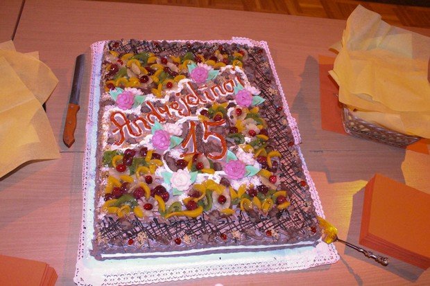 Beigu daļā vysi pasuocīņa apmaklātuoji tyka aicynuoti iz svātku torta nūbaudeišonu i sirsneigom sarunom.