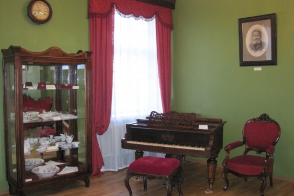 Ekspoziceja īpazeistynoj ar diveju Kruoslovys saimu – Šarkovsku i Rabinoviču – viesturi. Tuo laika atmosferā ļaun īsajust autentiskī prīškmati: Šarkovsku saimei pīdarūšs 19. godu symta firmys “H.Gentsch” flīgeļs, Kuzņecova fabrikys fajansa i porcelana trauki, kai ari mebelis i fotografejis.