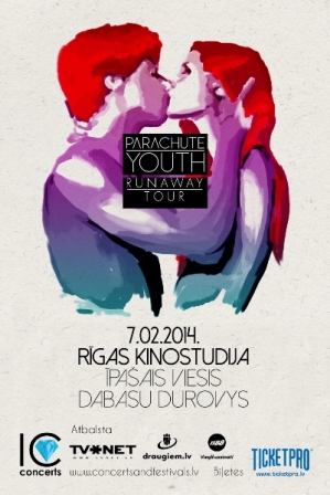 7. februarī Reigys kinostudejā i 8. februarī Tallinys RockCafe uzsastuos elektroniskuos muzykys duets nu Austrālejis „Parachute Youth”. Grupa „Dabasu Durovys” izlaseiti kai koncertu īsyldūšī muokslinīki. Beleti pīejami Ticketpro teiklā Baļtejā nu 6 latim iz koncertu Latvejā i 7 eiro – Igaunejā. Vaira informacejis www.concertsandfestivals.lv, pīduovoj IC Concerts.