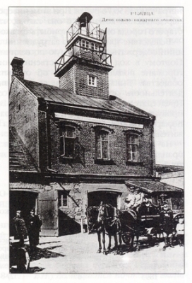 Karteņa: fotoreprodukceja nu Vladimira Nikova arhiva – breivpruoteiguos guņsdziesieju bīdreibys depo, 1900. godi.