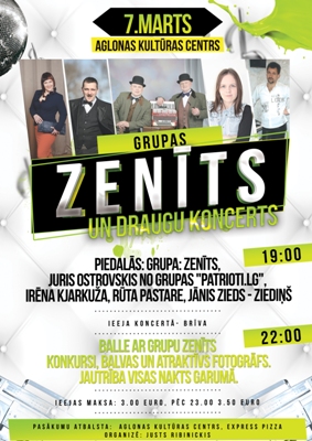 7.martā Aglyunys kulturys centrā 19:00 stuņdēs nūtiks grupys “ZENĪTS” i draugu koncerts.