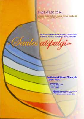 Leidz 19. martam Latgolys Kulturviesturis muzejā (Atbreivuošonys alejā 102, Rēzeknē) apsaverama tradicionaluo bārnu muokslys dorbu izstuode “Saules atspulgi”. Rēzeknis Muokslys i dizaina vydsškolys Muokslys školys audziekni kotru godu ruoda sovu veikumu, itūgod izstuodis dorbūs radzami bārnu atrostī saulis atspulgi i snīgā i latakuos, i pavasara paļtīs i muokuļu zalta maleņuos…