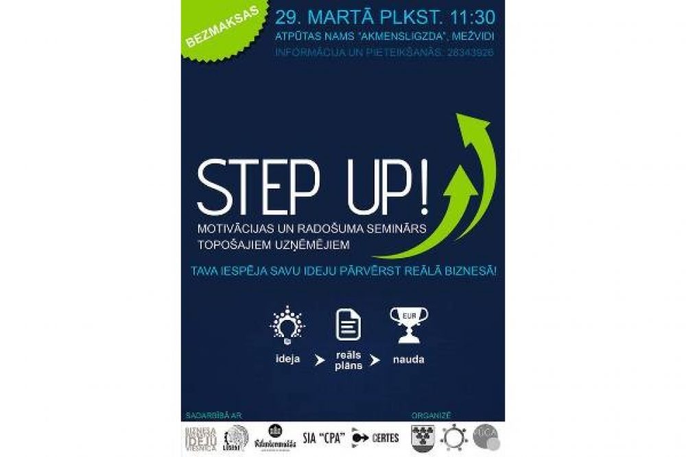 Kuorsovys nūvoda Jaunīšu centrs “Pūga” aicynoj pīsadaleit bezmoksys seminarā “Step up!”, kur kūpā ar uzjiemiejim i trenerim byus īspieja veiduot pamatus sovai uzjiemiejdarbeibai. Seminars nūtiks atpyutys nomā “Akmensligzda”, Mežvydūs, 29. martā 11.30.