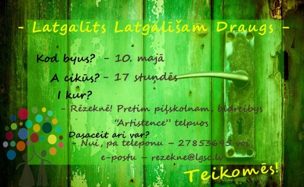 10.majā 17.00 Rēzeknē, bīdreibys “Artistence” telpuos (preteimā piļskolnam), nūtiks dzejiski – muzykalais pasuocīņs LaLaDra aba Latgalīts Latgalīšam Draugs.