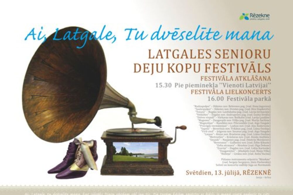 13. julī Rēzeknē nūtiks Latgolys senioru deju kūpu festivals “Ai, Latgale, Tu dvēselīte mana”, kas puļcēs kūpā na tik Latgolys, nu ari Vydzemis i Kūrzemis 17 senioru deju kolektivus nu Rēzeknis, Ilūkstis, Ruguoju, Dagdys, Vuorkovys, Daugovpiļs, Ludzys, Leivuona, Kruoslovys, Guļbinis, Jākubpiļs, Rundālis, Beverīnys, Jelgovys i Alojis piļsātom i nūvodim.