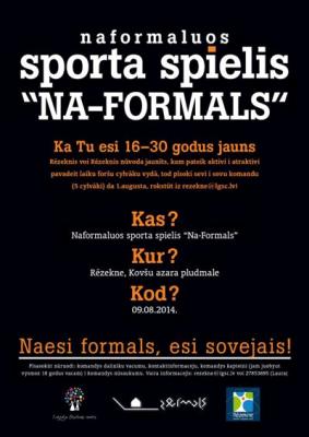 Latgolys Studentu centra Rēzeknis biroj aicynoj jaunīšus vacumā nu 16 leidz 30 godu izveiduot komandu 5 cylvāku sastuovā i pīsadaleit sporta spielēs “Na-Formals”, kurys nūtiks 9. augustā Rēzeknē, Kovšu azara pludmalē. Dasacejumi teik gaideiti leidz 1. augustam, rokstūt iz rezekne@lgsc.lv. Ar pasuokuma nūlykumu vari īsapazeit ite.