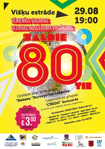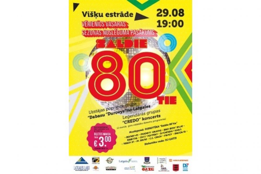 Vosorys izskaņā, 29. augustā, Daugovpiļs nūvoda Višku estradē nūtiks vierīneigs vosorys sezonys nūslāguma pasuokums “Saldie 80’tie”. 19.00 nūtiks vierīneigs koncerts, kur 40 godu jubileja koncertturis ītvorūs iz skotuvis uzastuos legendaruo Latvejis grupa “Credo” ar lobuokūs dzīšmu programu 2 stuņžu garumā. Īsylda – Latgolys pop-rock grupa “Dabasu durovys”. Nūslāgumā – vierīneiga nakts diskoteka ar “Bad Boys Blue”, “Modern Talking”, “Boney M” i cytu tūs laiku popularuokūs grupu kompozicejom. Diskoteku voda DJ Gatis. Beleti īprīkštierdznīceibā vysuos “Biļešu Serviss” kasēs i “Statoil” uzpyldstacejuos. Cena 3 EUR, pasuokuma dīnā byus duorguok.