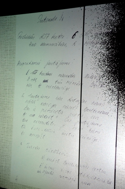 Pasuokuma nūslāgumā dalinīki sasastuoja apleik izveiduotajam simboliskajam gunkuram i uzrunys vuordus saceja nūvoda dūmis prīšksādātuoja. Taipat kai pyrms 25 godim, ari itymā pasuokumā vysi sasadeve rūkuos i, pīmynūt viesturiskuos akcejis nūrisi, kūpeigi dzīduoja dzīsmi – “Pi Dīveņa gari goldi”.