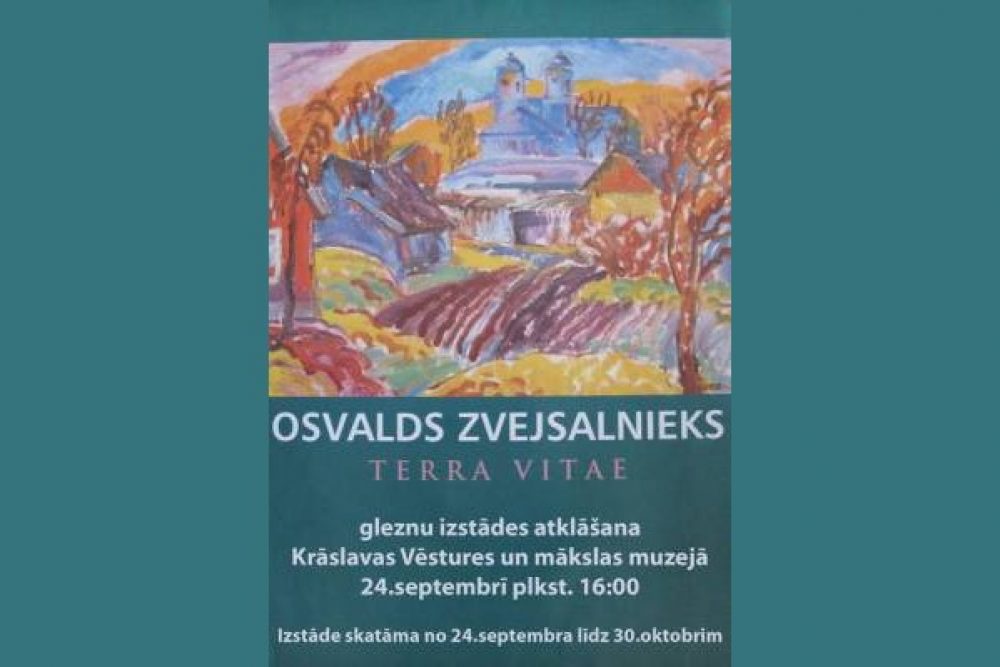 Ar gleznu izstuodi “Terra Vitae” gleznuotuojs Osvalds Zvejsaļnīks itūgod atzeimoj 70. dzeivis jubileju i īprīcynoj skateituojus ar kūšim i kruosu tūņūs suleigim dorbim, kas radeiti vosorys i rudiņa plenerūs.