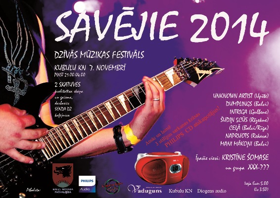 7. novembrī Bolvu nūvoda Kubulu kulturys nomā tiks organizāts ūtrais dzeivuos muzykys grupu festivals “Savējie 2014” .