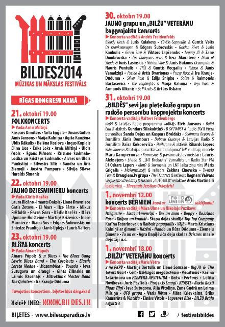 Sovukuort 31. oktobrī 19.00 jau ūtrū godu piec kuortys “BIĻDĒS” sevi jau dasacejušū grupu i rodūšūs personeibu kūpprojektu koncertā pīsadaleis grupa “Dabasu Durovys”. Ka viņugod kūpā iz skotuvis kuope Daugovpiļs teatra akteri, tod itūgod jim muzykala sadarbeiba veiduosīs ar Latvejis Radejis 5 žurnalisti i raidejuma “Kolnasāta” veiduotuoju Dairu Kokoreviču. Taipat koncertā kai eipašī gosti pīsadaleis Slavanais Jersikys orkestris.