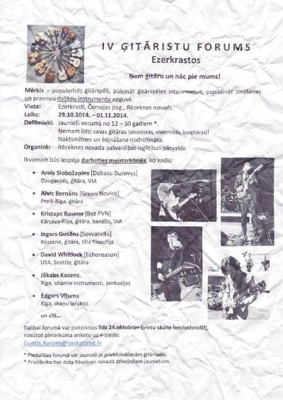 Nu 29. oktobra leidz 1. novembram Rēzeknis nūvoda Čornajis pogosta “Azarkrostūs” nūtiks jau par tradiceju palykušais Rēzeknis nūvoda gitaristu forums, kurā sevkurs jaunīts var pīsadaleit vysaiduos meistarklasēs. Dasasaceišona leidz 24. oktobram.