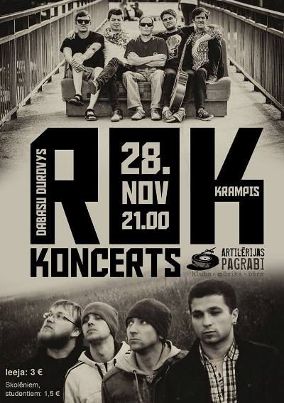Jau itūvokor, 28. novembrī, Daugovpiļs klubā “Artilērijas pagrabi” gaidoms latgalīšu muzykys grupu “Dabasu Durovys” i “Krampis” koncerts. Koncerta suokums 21.00. Īīšonys moksa: 3 eiro, školānim i studenti 1,50 eiro.