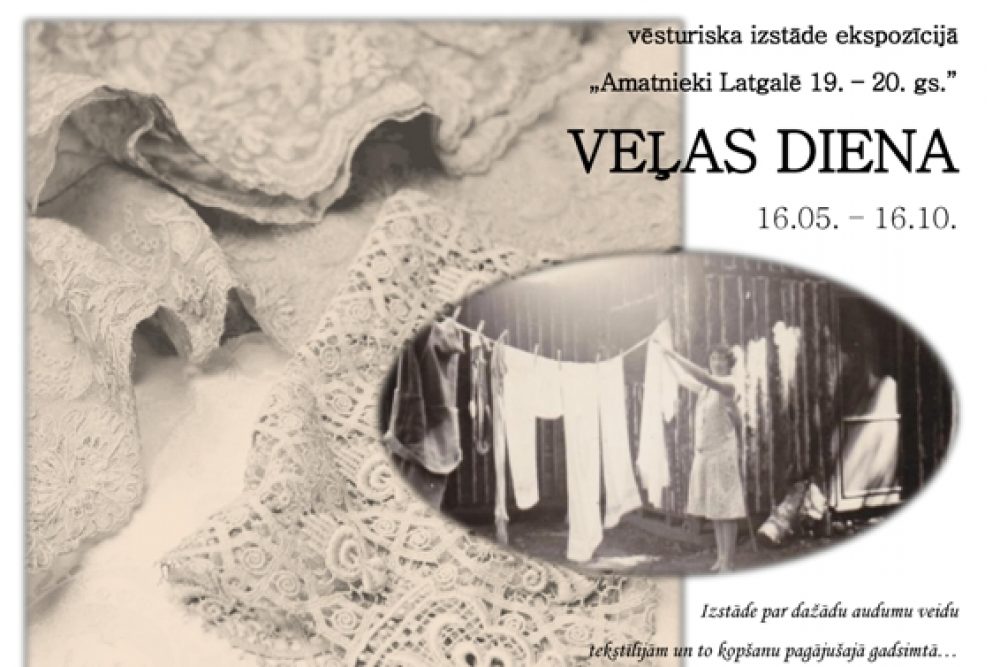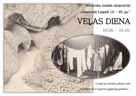 Drēbu vuoreišona voi bersšona iz velis dieļa myusu dīnu, ar tehnologejom pīsuotynuotajā kasdīnā, ruodīs piļneiga aizviesture. Laiks īt, tehnologejis i īspiejis atsateista, mainuos paaudzis i kasdīnys rytms, mainuos tradicejis i īrodumi. Partū Latgolys Muokslys i omotnīceibys centra ekspozicejis kruojuma globuotuojai Silvai Pūdnīcei roduos ideja izveiduot nalelu izstuodi ar nūsaukumu “Veļas diena”, kur radzamys viesturiskys vysaida veida tekstilejis nu ekspozicejis “Omotnīki Latgolā 19. – 20. gs.” kruojuma, kai ari sagataveita informaceja par tū, kai ituos tekstilejis saimineicys kūpe nu jau paguojušajā godu symtā.