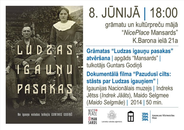 8. junī gruomotu i kulturpreču sātā “NicePlace Mansards” (Reigā, Kr. Barona ūļneicā 21a) 18:00 stuņdēs atvērs gruomotu “Ludzas igauņu pasakas”. Prezentacejis pasuokumā byus vareiba nūsavērt ari dokumentalū kinu “Pazudusī cilts: stāsts par Ludzas igauņiem”.