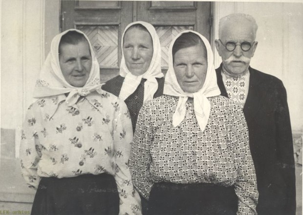 Foto nu LFK arhiva: Radopolis cīma etnografiskais ansamblis 1955. godā, LPSR ZA EFI IX. zynuotniskuo ekspediceja Viļānu rajonā.