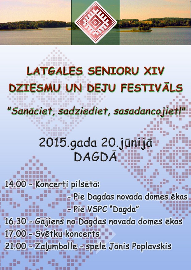Dagdā 20. junī vaira kai 900 dalinīku puļcēsīs iz Latgolys senioru XIV dzīšmu i deju festivalu „Sanāciet, sadziediet, sasadancojiet”. Festivalā pīsadaleis Latgolys senioru vokalī ansambli, kori, deju kolektivi, folklorys kūpys, etnografiskī i mozuokumtauteibu ansambli.