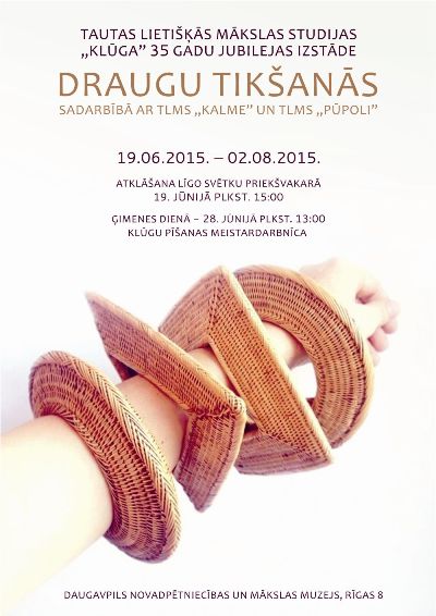 Da 2. augusta Daugovpiļs Nūvodpietnīceibys i muokslys muzejā, Reigys īlā 8, apsaverama Tautys lītiškuos muokslys studejis “Klūga” 35 godu jubileja izstuode “Draugu tikšanās”.