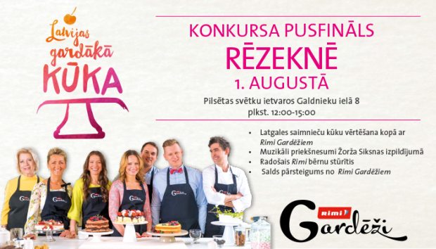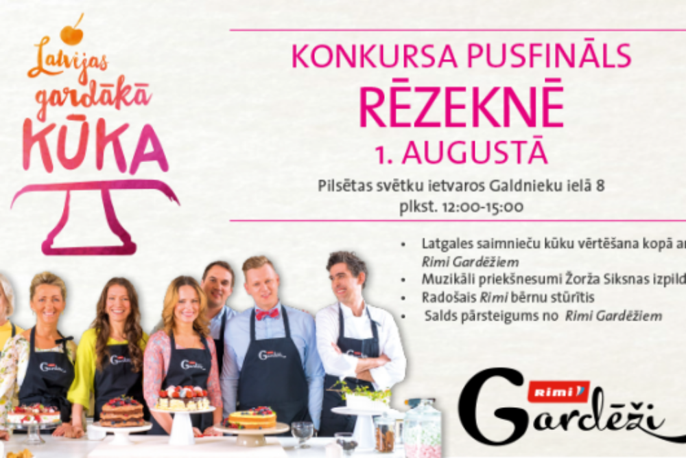 1. augustā Rēzeknē, Galdnīku īlā 8, nu 12.00 da 15.00 prasmeiguokuos Latgolys saimineicys ruodeis, greznuos i dekorēs sovus kruošņūs i soldonūs meistardorbus, sasacenšūt “Rimi Latvia” reikuotuo konkursa “Latvijas gardākā kūka” regionalajā pusfinalā. Latgolys pusfinalā Rēzeknē sasatiks ostonis lobuokuos tortu cepiejis nu Latgolys, draudzeigā ceiņā nūskaidrojūt divejis saimineicys, kurys aizstuovēs Latgolys regiona gūdu konkursa finalā Reigā, pretendejūt iz Latvejis gorduokuos torta cepiejis titulu.