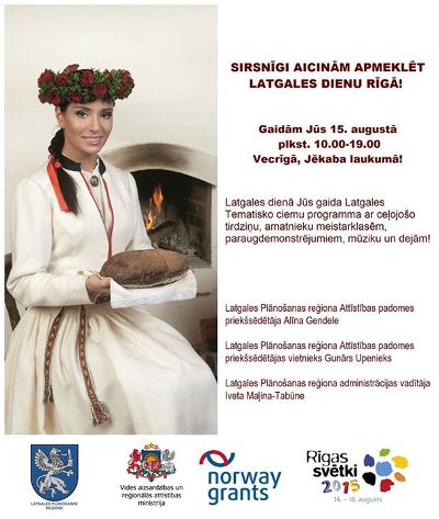 Latgolys plānuošonys regions sadarbeibā ar bīdreibu “Latgales Tematiskie ciemi” 15. augustā nu 10.00 da 19.00 Jākuba laukumā Reigā reikoj Latgolys dīnu.