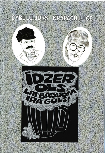 Izdūta latgalīšim labi zynamuos jūku gruomotys “Īdzer veina, lai dzeive ira feina!” ūtruo daļa “Īdzer ols, lai bāduom ira gols!”.