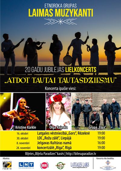 Etnoroka grupa “Laimas Muzykanti” 16. oktobrī ar skaneigu koncertu Latgolys viestnīceibā GORS suoks jubileja koncertturu “Atdot tautai tautasdziesmu”.
