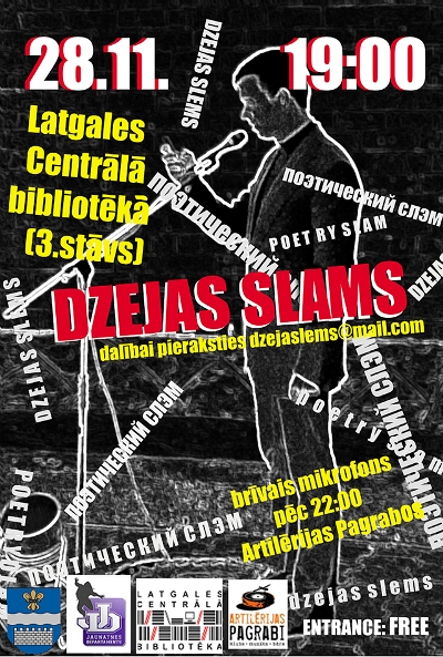 Daugovpilī 28. novembrī 19.00 Latgolys Centraluos bibliotekys trešajā stuovā nūtiks dzejis konkurss “Dzejas slams”, kurymā pīsadaleit var sevkurs dzejūļu autors. Pasuokuma mierkis ir atkluot jaunūs talantus, dūt jim vareibu aplīcynuot sevi, informej organizaceja “D’SAINT”.