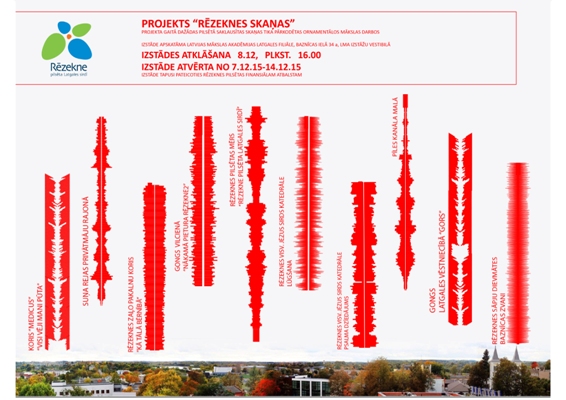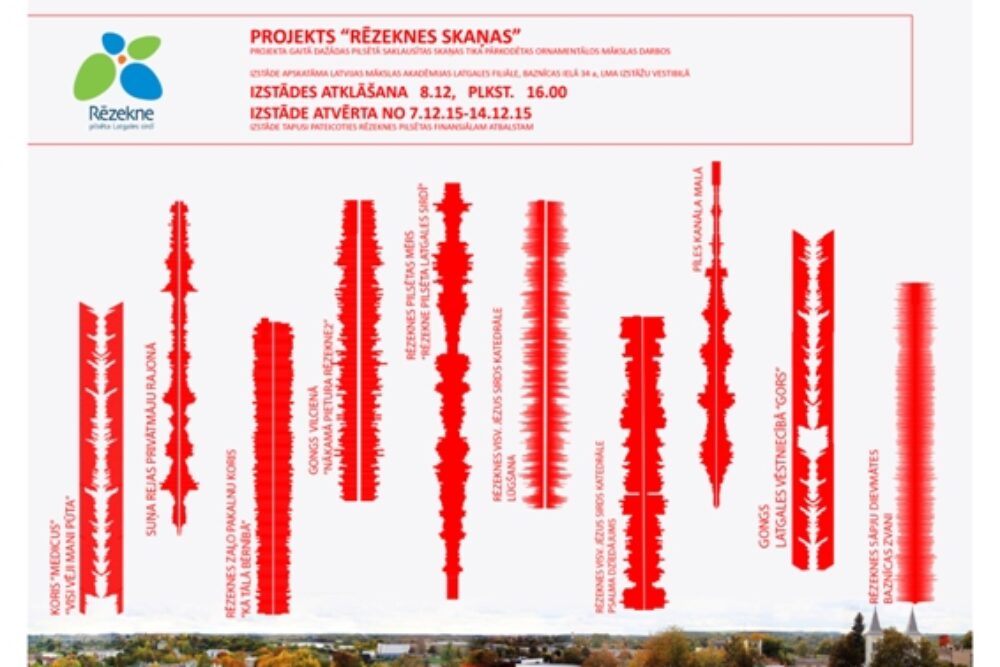 8. decembrī 16.00 projekta “Rēzeknes skaņas” nūslāgumā Latvejis Muokslys akademejis Latgolys filialē (Bazneicys īlā 34a, 2. stuova izstuožu vestibilā) tiks atkluota izstuode “Rēzeknes skaņas”, kurymā apsaverami vysaidi Rēzeknis ornamenti, atsasaucūt iz piļsātvidē īraksteitom skaņom. Dorbi veidoj sovpateigu piļsātys skaņu kodu vizualizaceju sītspīdē.