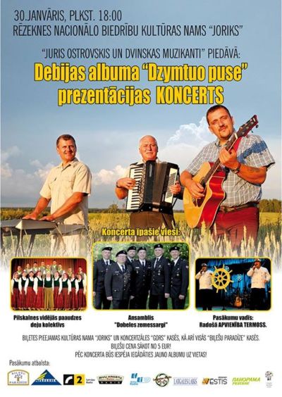 30. janvarī 18.00 Rēzeknis Nacionalūs bīdreibu kulturys nomā “Joriks” nūtiks grupys “Dvinskas muzikanti” debeja albuma “Dzymtuo puse” prezentacejis koncerts.