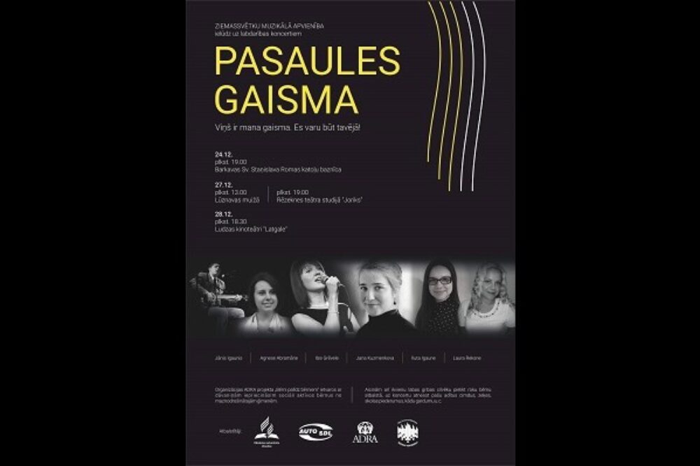 Zīmyssvātku muzykaluo apvīneiba (ZMA) aicynoj muzykys meiļuotuojus iz lobdareibys koncertim “Pasaules gaisma”, kas decembra beiguos nūtiks Borkovā, Lūznovā, Rēzeknē i Ludzā.
