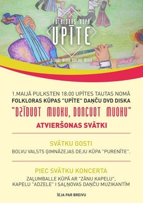 1. majā 18.00 Upeitis tautys nomā nūtiks folklorys kūpys “Upīte” daņču DVD “Dzīduot muoku, doncuot muoku” attaiseišonys svātki.