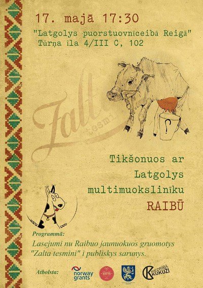 17. majā 17.30 Latgolys puorstuovnīceibā Reigā varēs sasatikt ar Latgolys multimuokslinīku Raibū.