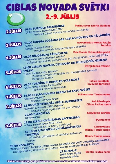 Nu 2. da 9. juļa sovus svātkus svieteis Cyblys nūvods, pīduovojūt nūtikšonys vysaidom gaumem, viestej Cyblys nūvoda sātyslopa.
