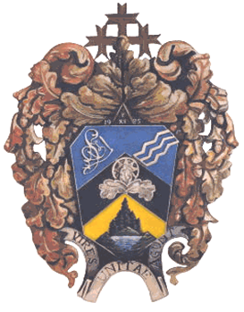 [1] Treis latiņu volūdys vuordu i korporacejis nūsaukuma pyrmūs burtu savīnuojums monogramma Vivat, Crescunt, Floreat…