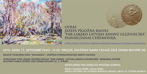 Preiļu viesturis i lītiškuos muokslys muzejā 17. septembrī 14.00 byus Jezupa Pīguožņa bolvys “Par labāko Latvijas ainavu glezniecībā” padūšonys ceremoneja, kurā nu treis žurejis izvierzeitūs nominantu tiks apduovuots golvonuos bolvys sajiemiejs. Bolvys sajiemiejs tiks pi Juoņa Strupuļa veiduotuos zalta medalis i Preiļu nūvoda dūmis pīškiertuos naudys bolvys 3000 eiro apmārā.