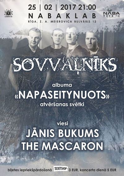 Itymā nedeļgolā, 25. februarī, Reigā, NABAKLAB, nūtiks Sovvaļnīka jaunuo albuma “Napaseitynuots” attaiseišonys svātki.
