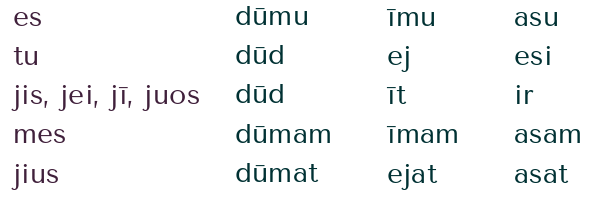 Pīļaunamys ari vīnskaitļa 1. personys formys dūdu, eimu, asmu, daudzskaitļa 1. personys formys dūdam, eimam, daudzskaitļa 2. personys formys dūdat, eimat, īmat, ejte. Aizdavumūs itymā materialā par pareizom tiks skaiteitys tuos formys, kas nūruodeitys pamatmaterialā. Īsokoms ari kasdīnys raksteibā pīsaturēt pi tom.
