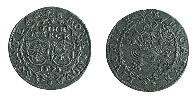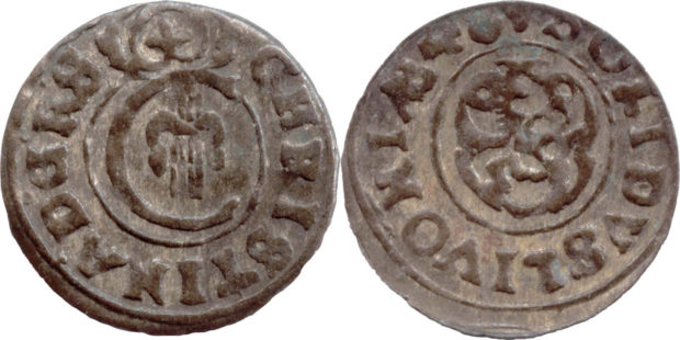 2. att. Puordaugovys hercogistes marka. Kolta Duolē 1573. gadā. (Olūts: Haljak G. Livonian Coins XIII-XVIII century part II: Kingdoms. Tallinn. 2011. p.73)