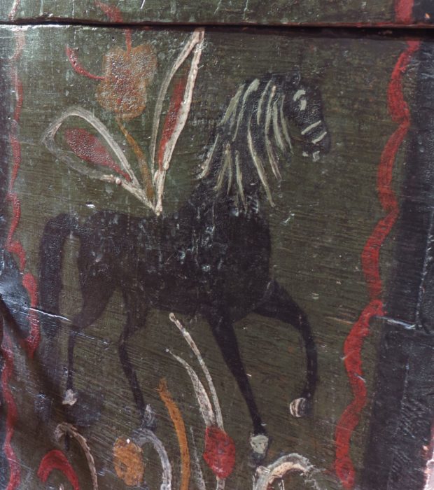 Skreinis gleznuojums – zyrgs. 19. g.s. beigys. Kaunatys pogosts, Leini, Maculeviča sāta. Atsarūn Latvejis Etnografiskajā breivdobys muzejā.