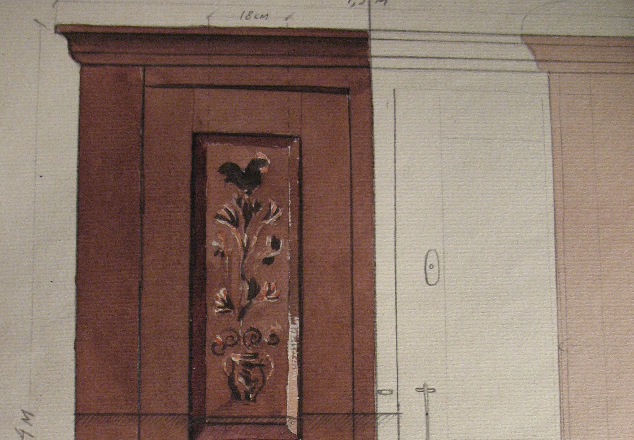Gleznuotī dzeivinīki Latvejis i Eiropys tautys muokslā īguojuši nu vītejuos varys gierbūņu. Latvejā taidi motivi kai divgolvu ierglis, lauva, greifs i brīds vītejā tautys muokslā atveiduoti tikai gleznuojumūs vysmoz kūpš 18. godu symta beigom. Dekorativuo gleznuojuma kūpejā izkuortuojumā iz mebeļu prīkšejūs plakņu vyscīškuok īvāruota heraldiska kompoziceja, kod objekti attāluoti spīgeļsimetrejā.