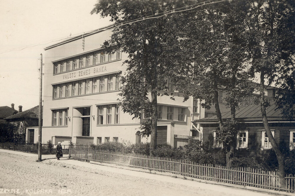 Suokumā bankys filiale atsaroda īreituos telpuos Latgolys prospektā 28, bet 1927. godā īstuodis darbinīki puorsacēle iz nomu Atbreivuošonys alejā 10 (myusu dīnuos Galdnīku īla 8, veikala “Rimi” atsarasšonys vīta). Bankys nūdaļai pasaplašynojūt, vaira napītyka ar asūšom telpom Atbreivuošonys alejā 10 i papyldu tam tyka īreitys telpys Kalpaka īlā 10. Vys arviņ beja aktuals vaicuojums par pīmāruotuokys telpys izbyuvi, kas spātu nūdrūsynuot pylnvierteigu turpmuokuos bankys dorbu. 1930. goda beiguos bankai izadeve dabuot zemis gobolu Kalpaka īlā 18. Jaunceļamuo noma metu konkursā par lobuokū tyka atzeits J. Blaua dorbs. Storp juo projekteitom ceļtnem beja ari latvīšu bīdreibys noms Līpuojā (1934. g.).