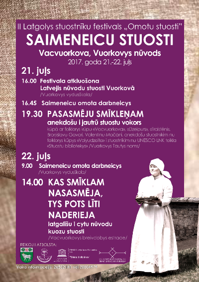 21. i 22. julī Vacvuorkovā i Vuorkovā nūtiks II Latgolys stuostnīku festivals “Omotu stuosti”, viestej informaceja UNESCO Latvejis Nacionaluos komisejis (LNK) teikla “Stāstu bibliotēkas” sātyslopā. Festivals itūgod veļteits kuozu saimineicom i jūs stuostim. Iz festivalu aicynuotys i pošys saimineicys, i stuostnīki, kurī zyna jautrus gadīņus nu kuozom, i tī, kas gryb tūs klauseitīs.