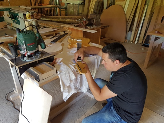 Juoņs Kuzminskis jau vairuokus godus izgatavej elektriskuos gitarys. Izaruod, ka tys ir gona laikītiļpeigs dorbs, partū ka viereiba juodagrīž kotrai detaļai i seikumam, suocūt ar kūksnis kaļteišonu, beidzūt ar mozūs detaļu pīsleipiešonu. Niu Juoņa Kuzminska gitarys skaņ na viņ Latgolā i Latvejā zynomu muokslinīku rūkuos, nu ari aiz Latvejis rūbežu.