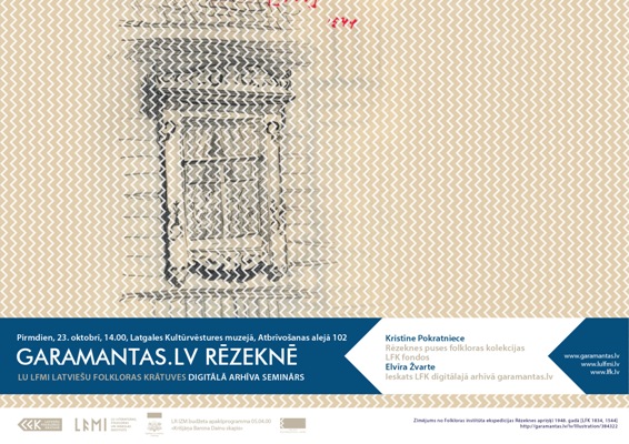 23. oktobrī seminarā garamantas.lv redaktoris – Elvīra Žvarte i Kristīne Pokratniece īpazeistynuos interesentus ar LFK digitaluo arhiva izmontuošonys vareibom, kai ari pastuosteis i paruodeis, kaidi Rēzeknis pusis materiali atrūnami Latvīšu folklorys kruotuvē.