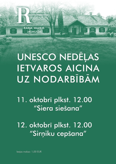 Oktobrī Latvejā tradicionali nūteik UNESCO nedeļa. Itūgod tei nūsarysynuos nu 9. da 15. oktobra, i tuos tema ir “Kulturys montuojums lītuojumā”, akcentejūt kulinaruo montuojuma nūzeimi myusu dīnuos. UNESCO nedelis ītvorūs Raiņa muzejs Juosmuižā aicynoj interesentus iz kulinaruo montuojuma nūdarbeibom.