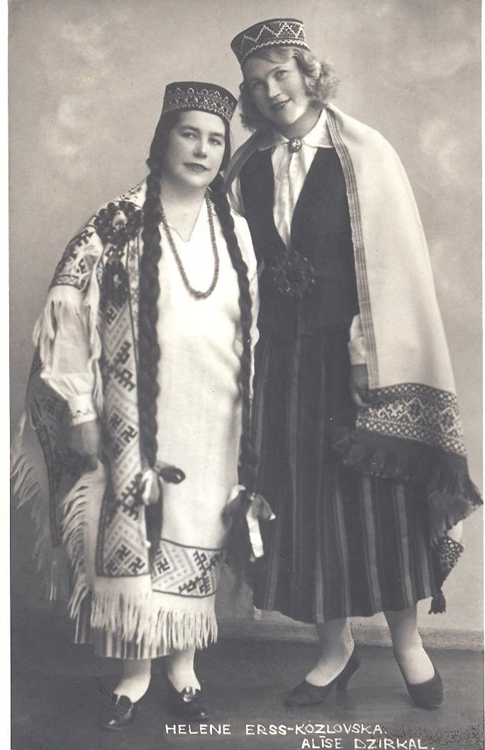 Dzīduotuoja Helena Ersa-Kozlovska i pianiste Alīse Dzirkale Reigā ap 1930. godu. Karteņa: Preiļu Viesturis i lītiškuos muokslys muzejs