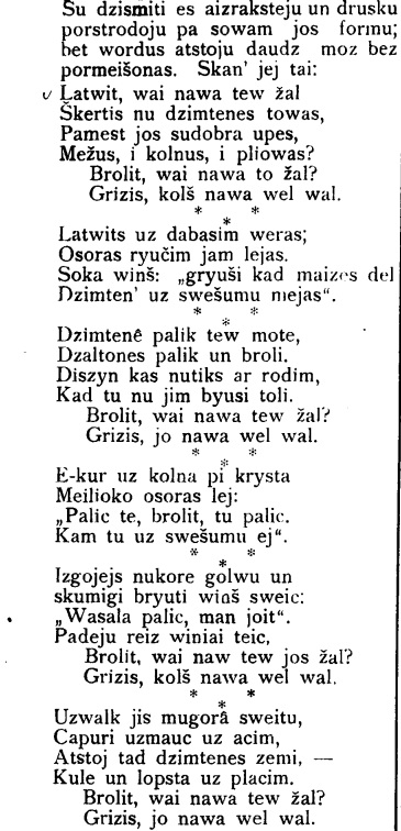 Bet, breinums! – Dzeivis skrituļs pa viņu pruotam veļās.”